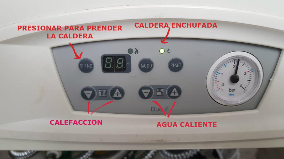 4) CHEQUAR EL MANOMETRO DE LA CALDERA YA QUE DEBERIA ESTAR ALREDEDOR DE 2. EN CASO DE NO ESTARLO, EN LA PARTE INFERIOR DE LA CALDERA HAY UNA PERILLA QUE SE ENROSCA Y DESENROSCA PARA DEJAR PASAR EL AGUA A FINES DE LLEVAR LA PRESION DE LA CAÑERIA A ALREDEDOR DE 2. UNA VEZ HECHO ESTO, ASEGURARSE DE CERRAR LA PERILLA NUEVAMENTE.